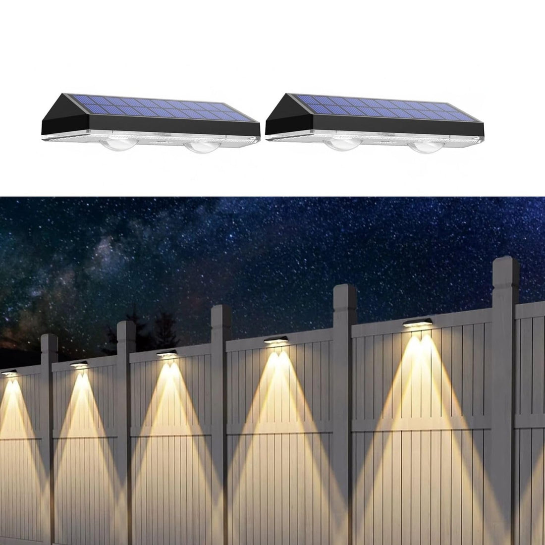 2-Pack Solar Fence Lights – Outdoor LED Wall-Mount Waterproof Lamps with 3 Color Modes (Natural, Warm White, Cool White) for Deck, Patio, Stair, Rail, Backyard, House Decoration.