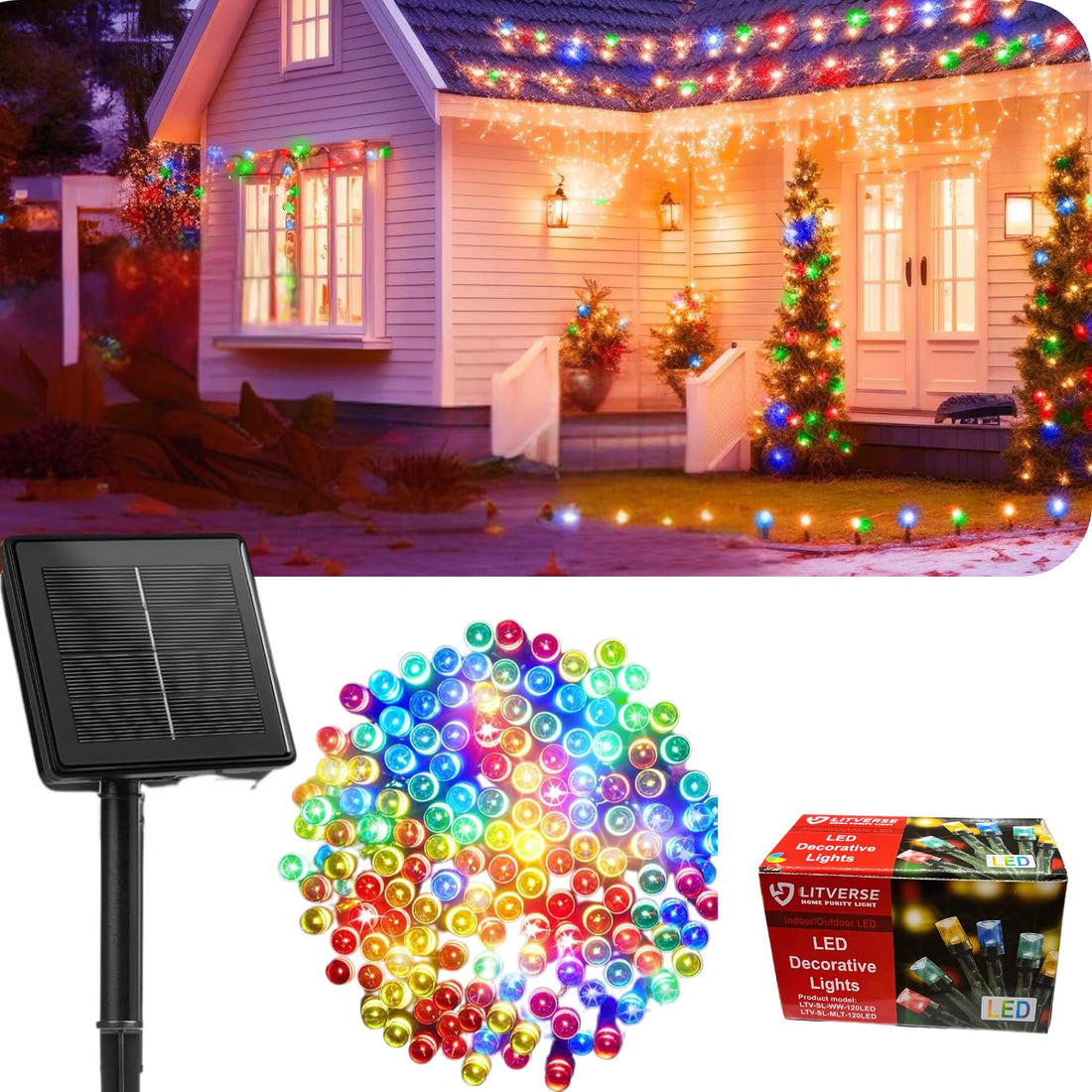 Solar Powered 120 LED Waterproof String Lights – Indoor/Outdoor Decorative PVC Fairy Lights for Garden, Patio, Landscape, and Holiday Decoration (Multi)