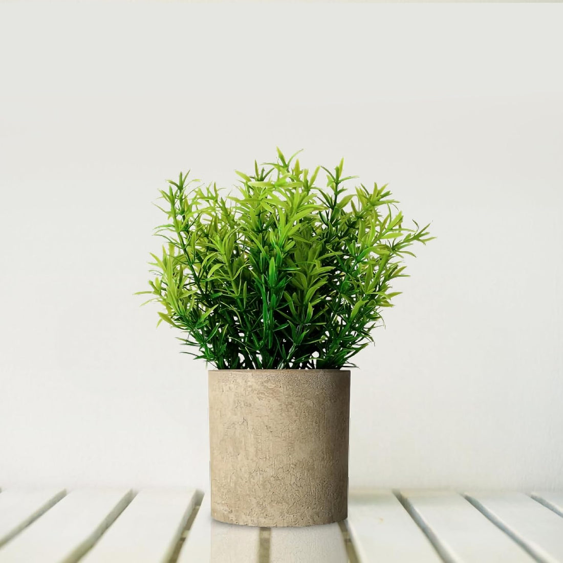 Artificial Green Leaf Plant with Pot| 3inch | Faux Greenery in Concrete Planter for Home Decor | Small Fake Plant for Bathroom, Kitchen, Office, Living Room, Shelf | Zero Maintenance (Green)