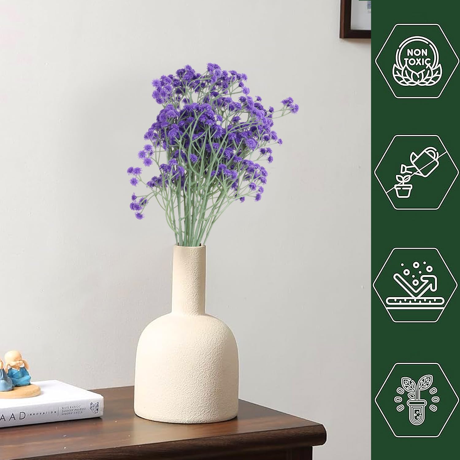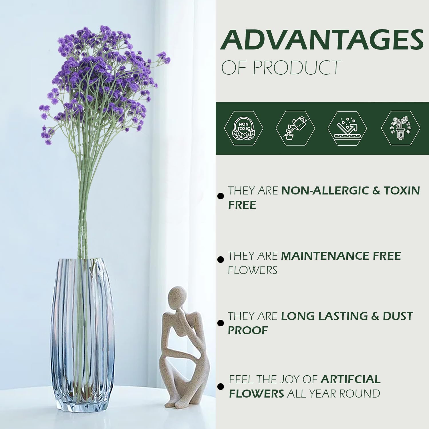 - Quantity: Pack of 5 artificial baby's breath stems, each bunch has 108 small flower heads, with bendable branches to fit most vases.