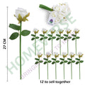 12pcs Artificial Rose Fake Silk Plants Wedding Valentines Birthday Anniversary Christmas Mothers Day (White-12pcs)