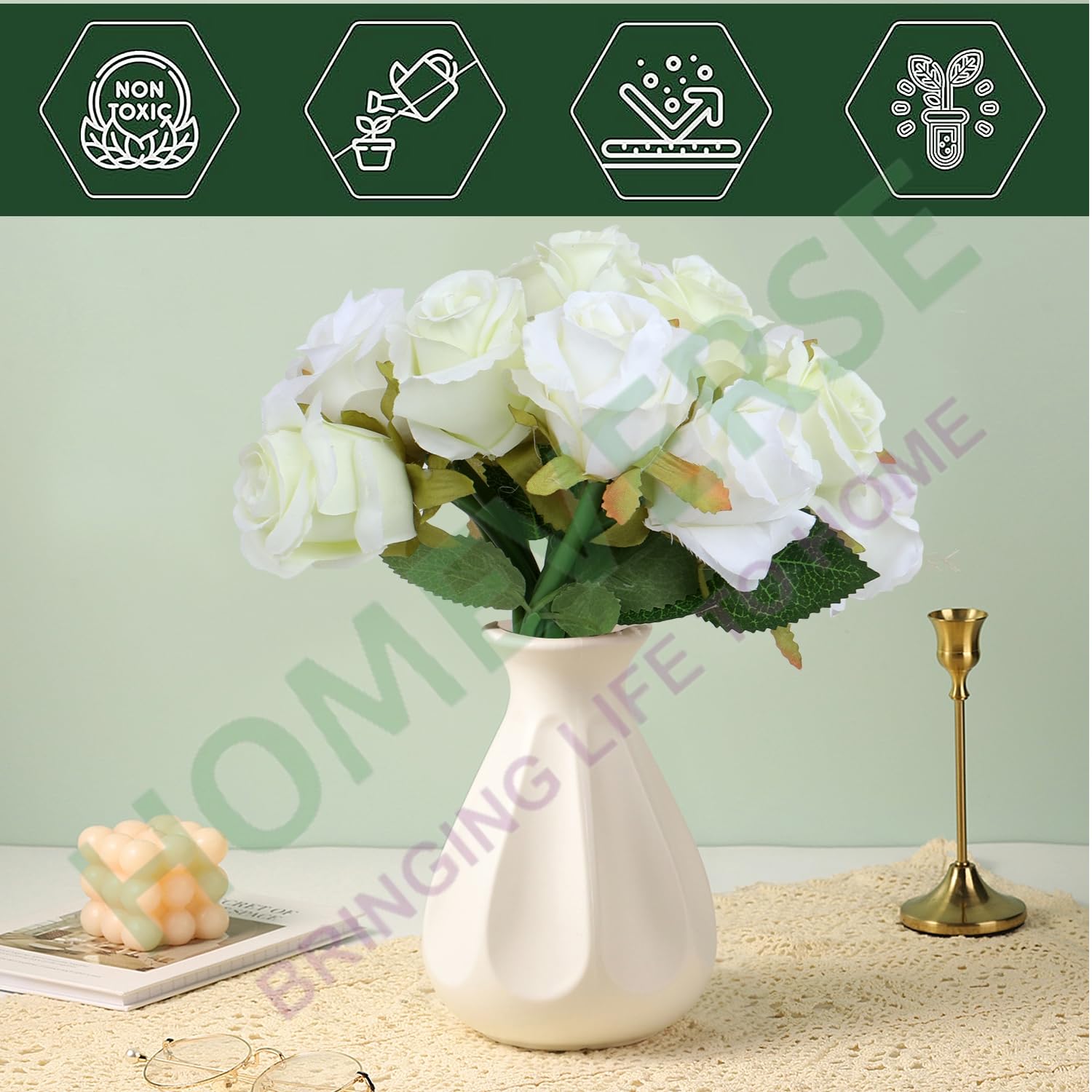 - ARTIFICIAL ROSES: These artificial roses flowers bring you the feeling of fresh and elegant, they are beautiful and realistic. Brighten your home with these artificial roses. They can work harmoniously with any decor and style.