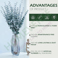 - 【Beautiful Artificial Plant】The eucalyptus is a popular option for both indoor and outdoor. Its gray-green leaves surface has light white powder, just like condensed hoarfrost. The eucalyptus stems sold by sukh are artificial, and the surface of its plastic leaves is sprayed with gray-green and white paint, which not only restores the appearance of natural eucalyptus leaves, but also makes it look very comfortable with this color combination.