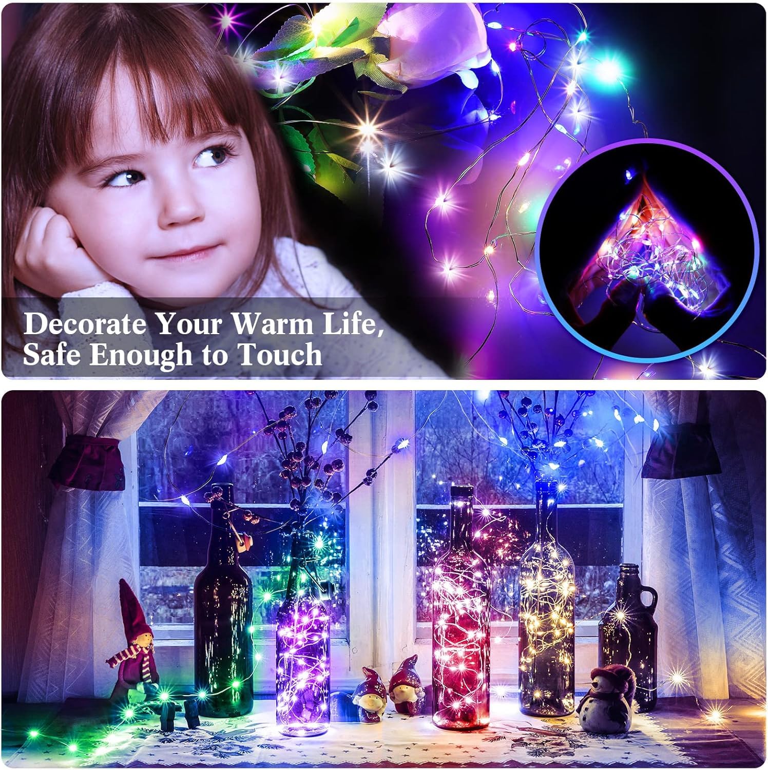 3 Pack Fairy Lights Battery Operated [3 Modes], 7ft 20 Led Twinkle Lights String Lights Waterproof Bulk Small Mini Silver Wire for Mason Jars Vases Wedding Table Centerpiece,Multicolor