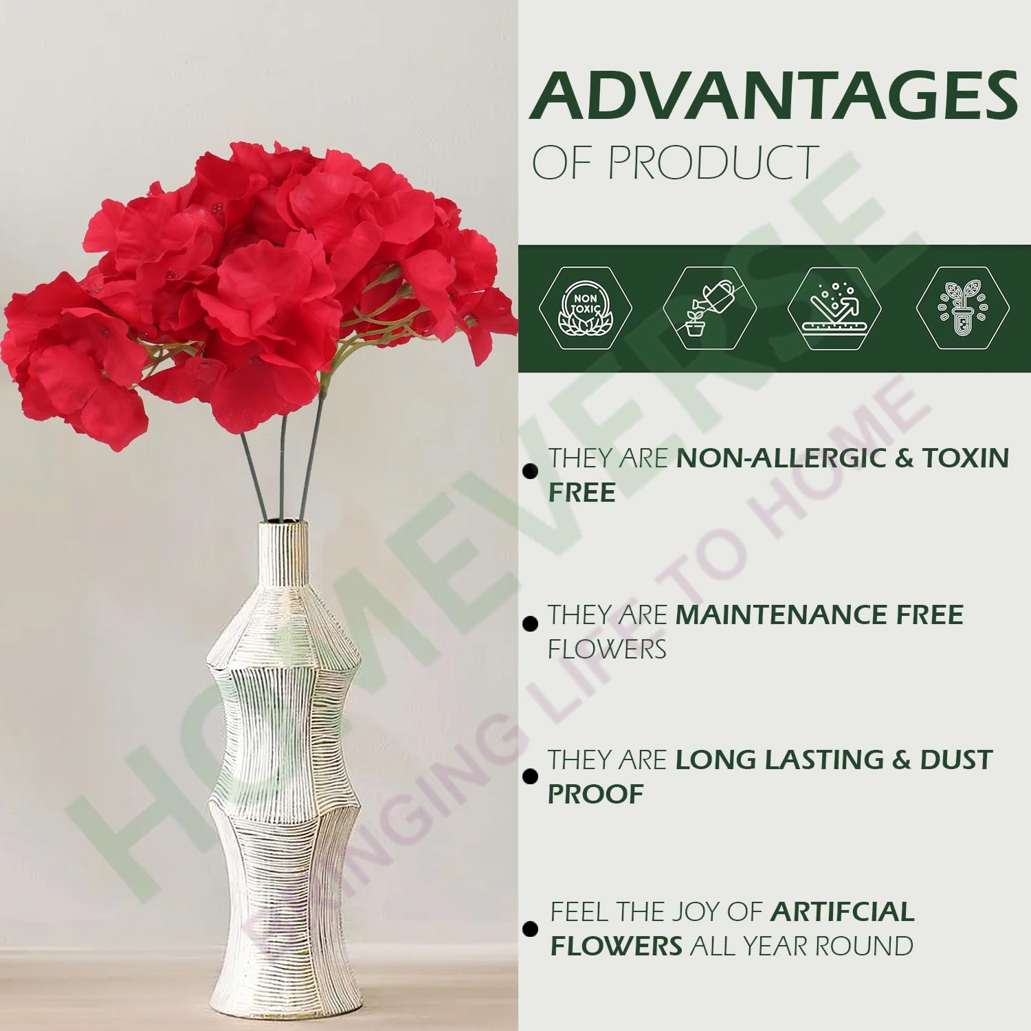 - 🌸CAREFREE & ETERNAL BEAUTY: Our fake hydrangea are easy to care and do not require water, sunlight. The petals are made of high quality silk, which is durable and healthy. For those who want to enjoy the beauty of nature but have no time to maintain it and those who are allergic to real flowers, our faux hydrangeas are the perfect choice.