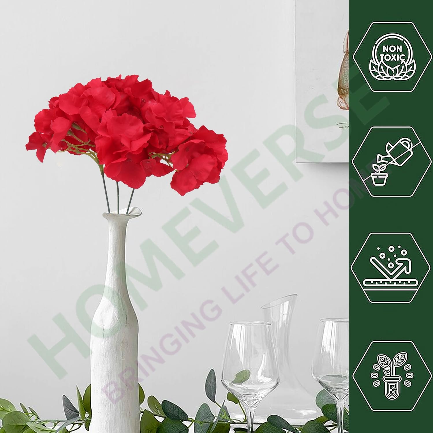 3 Pcs Hydrangea Artificial Flowers With Detachable Stems - Faux Silk for Decorations, Wedding Decor, DIY Centerpieces, Wreath (Red)