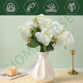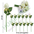 6pcs White+6pcs Green |Artificial Rose Fake Silk Plants Wedding Valentines Birthday Anniversary Christmas Mothers Day (White Green-12pcs)