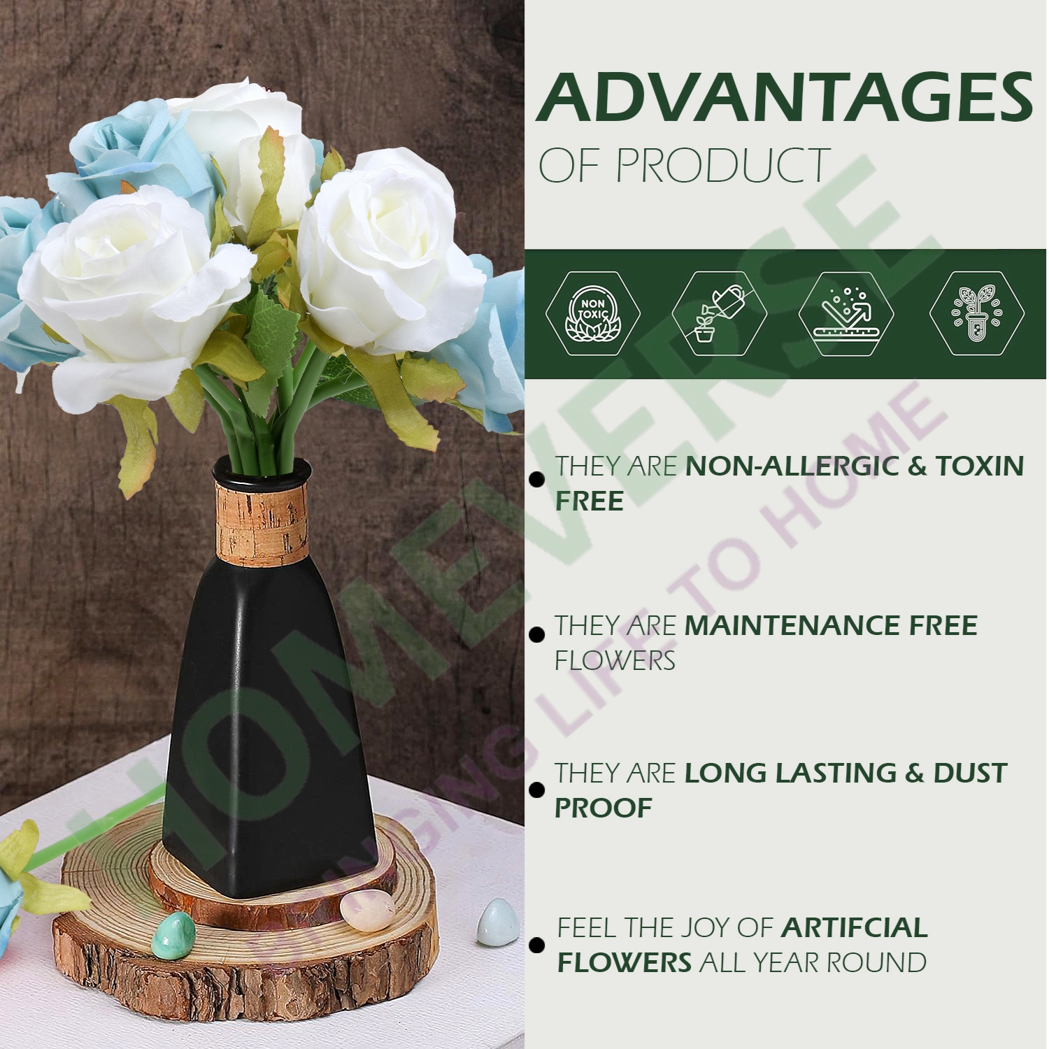 ARTIFICIAL ROSES: These artificial roses flowers bring you the feeling of fresh and elegant, they are beautiful and realistic. Brighten your home with these artificial roses. They can work harmoniously with any decor and style.