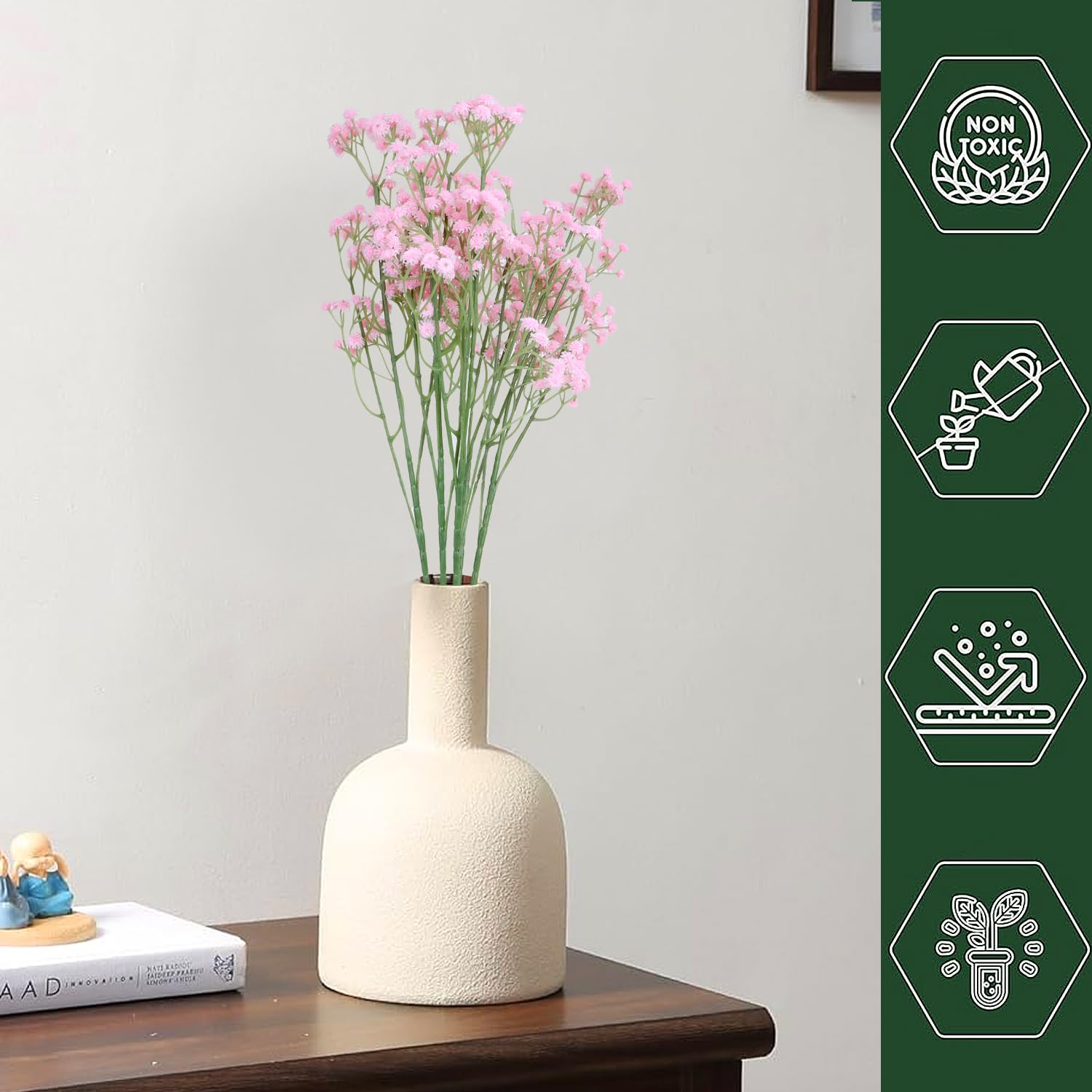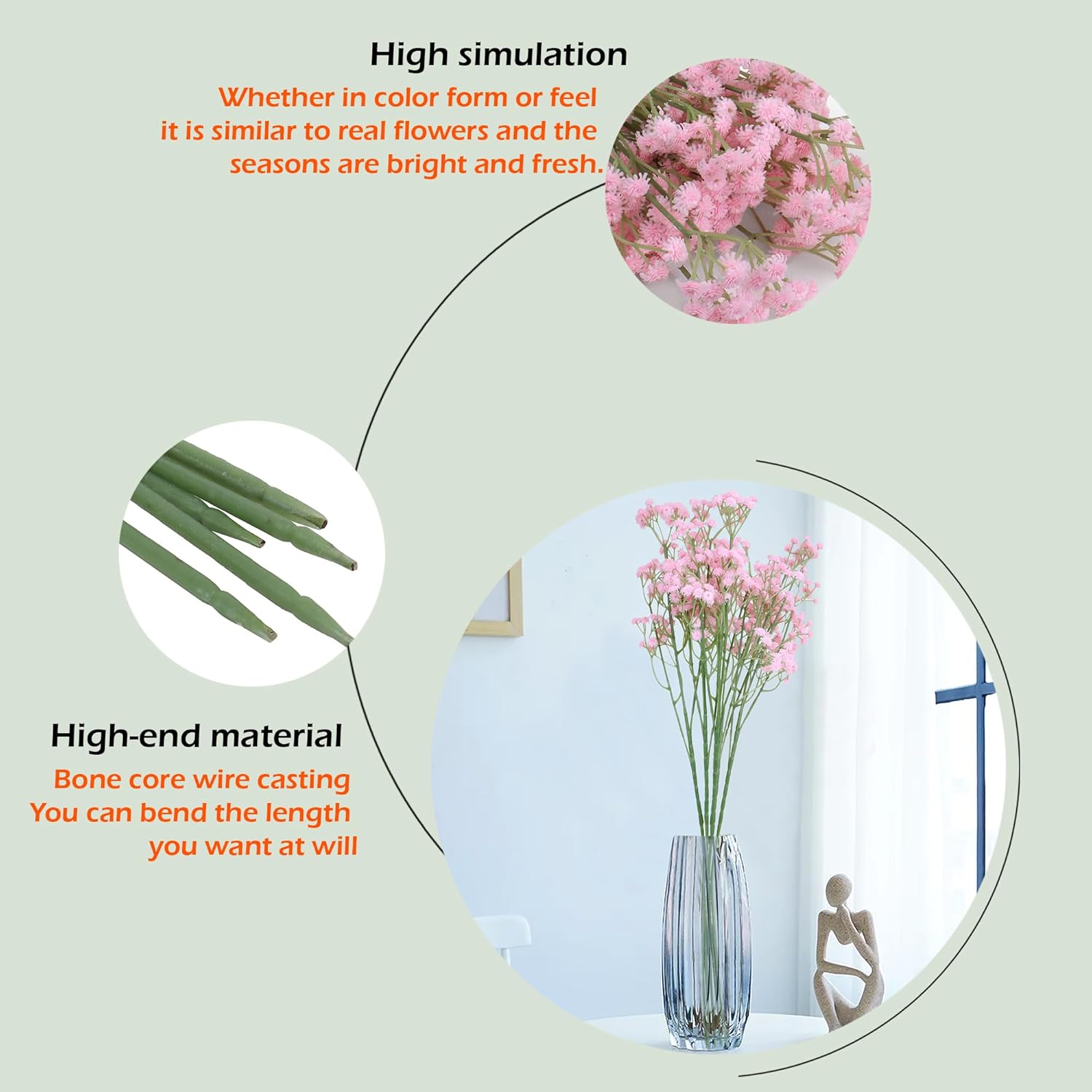 - Quantity: Pack of 05 artificial baby's breath stems, each bunch has 108 small flower heads, with bendable branches to fit most vases.