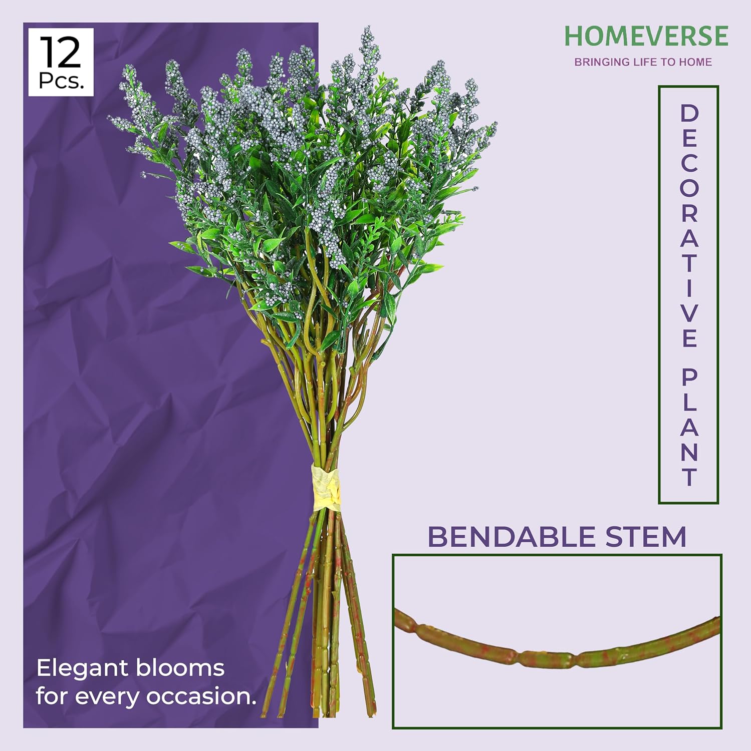 Fresh Lavender 12Pcs Lavender Fake Plant 14Inch Height Bouquet, Green Stems Bundled for Decorative Items for Diwali, Home, Room, Office, Bedroom, Anniversary, Deepawali (Blue)