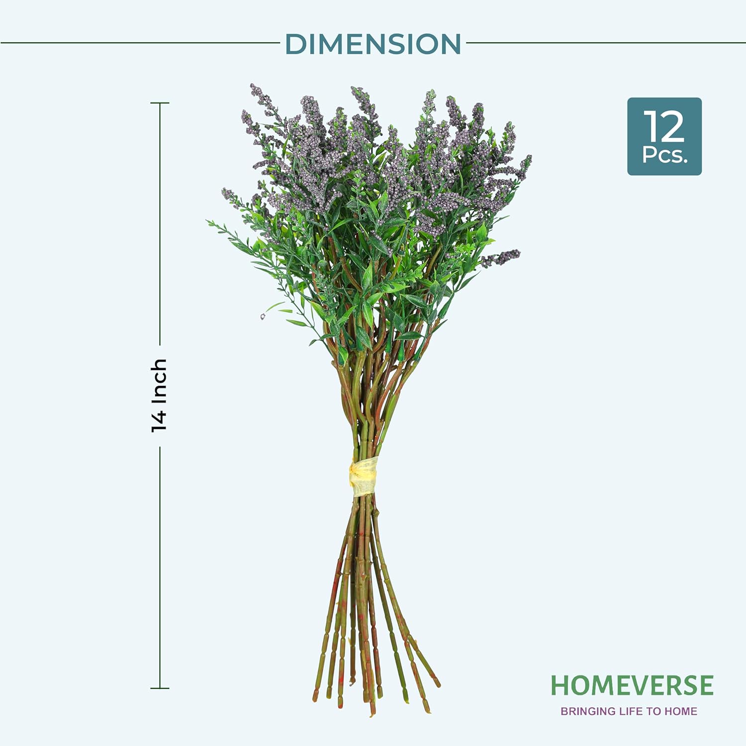 Fresh Lavender 12Pcs Lavender Fake Plant 14Inch Height Bouquet, Green Stems Bundled for Decorative Items for Diwali, Home, Room, Office, Bedroom, Anniversary, Deepawali (Dark Purple)