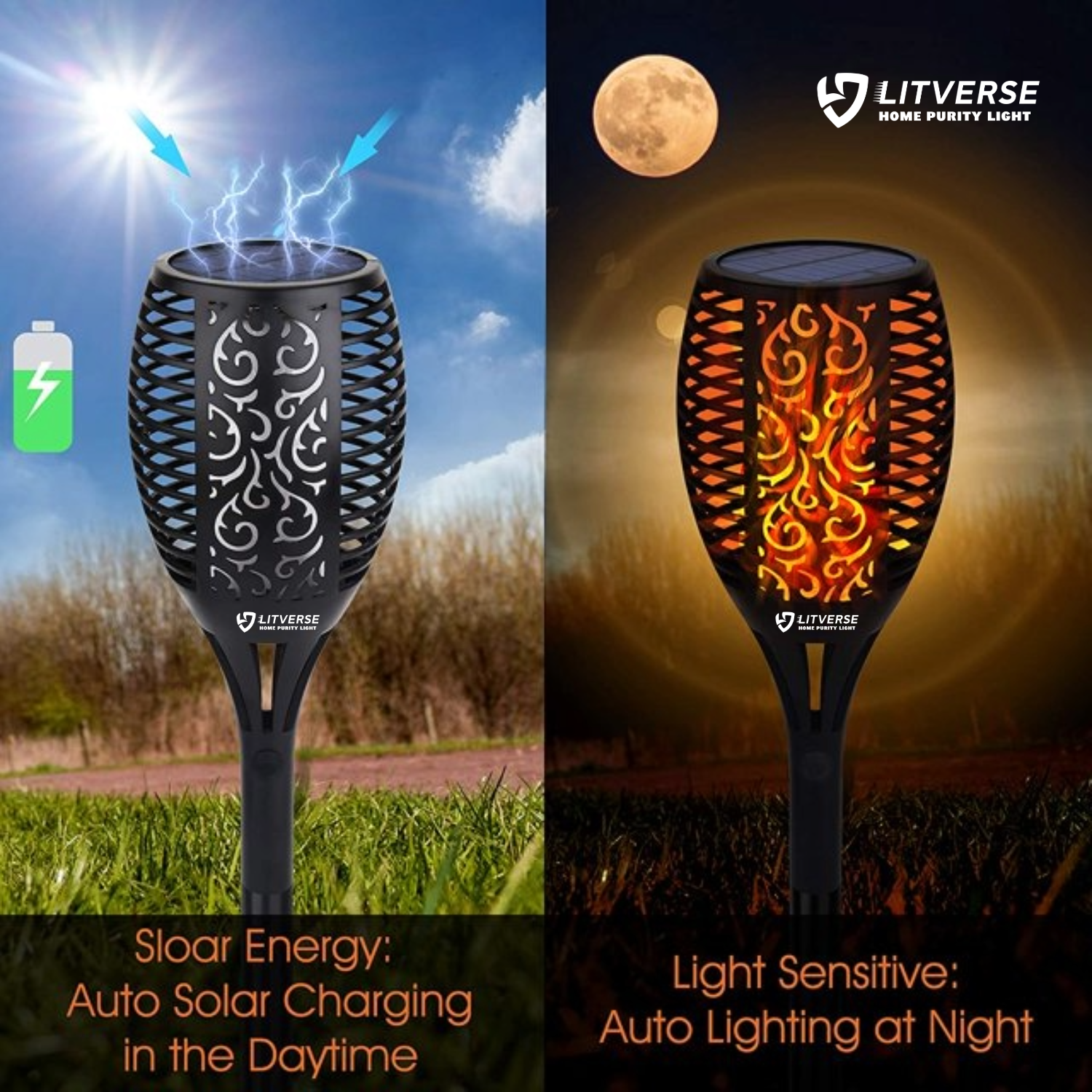 Solar fire maashaal Light with 96 Led Flickering Flame 3mode - Pack of 2