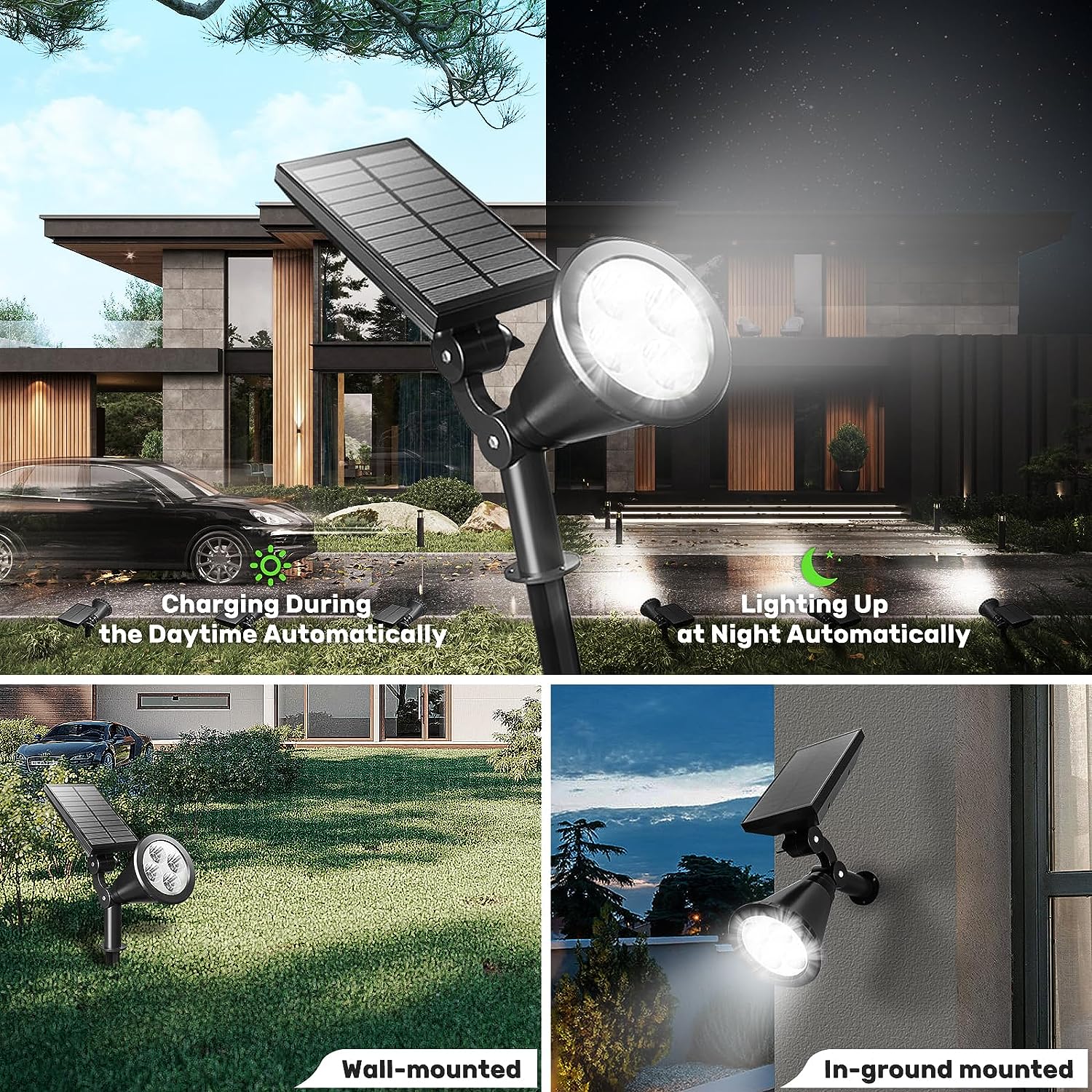 Solar Spot Lights Outdoor IP65 Waterproof, Auto On/Off Lights (Cool White)