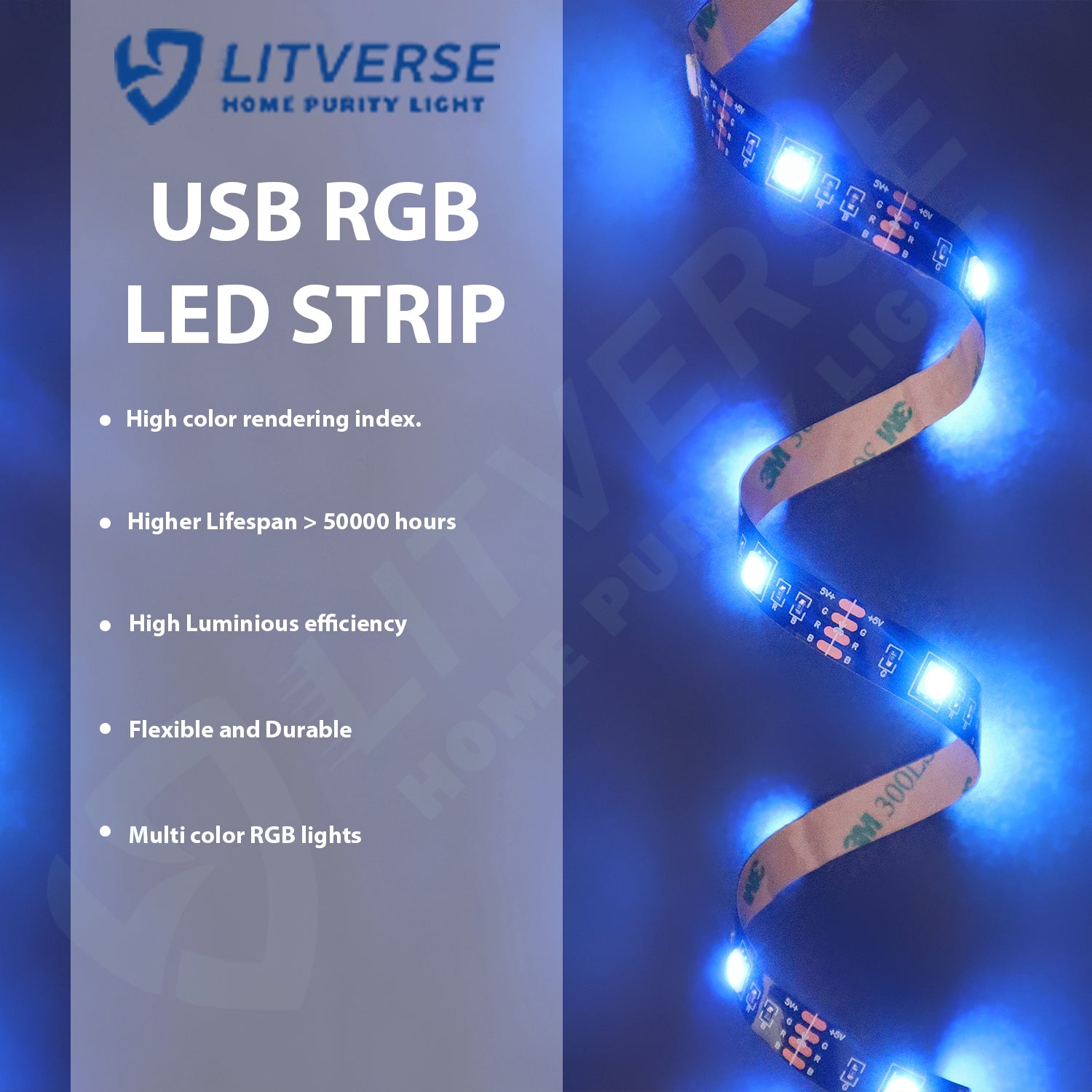 LITVERSE Light Strips 1Meter | RGB 5050 Color Changing LED Strip Light with USB Cable for TV Backlight, Bedroom, Cabinet Shelf Display (1 Meter for 16'' to 28''-Multi)