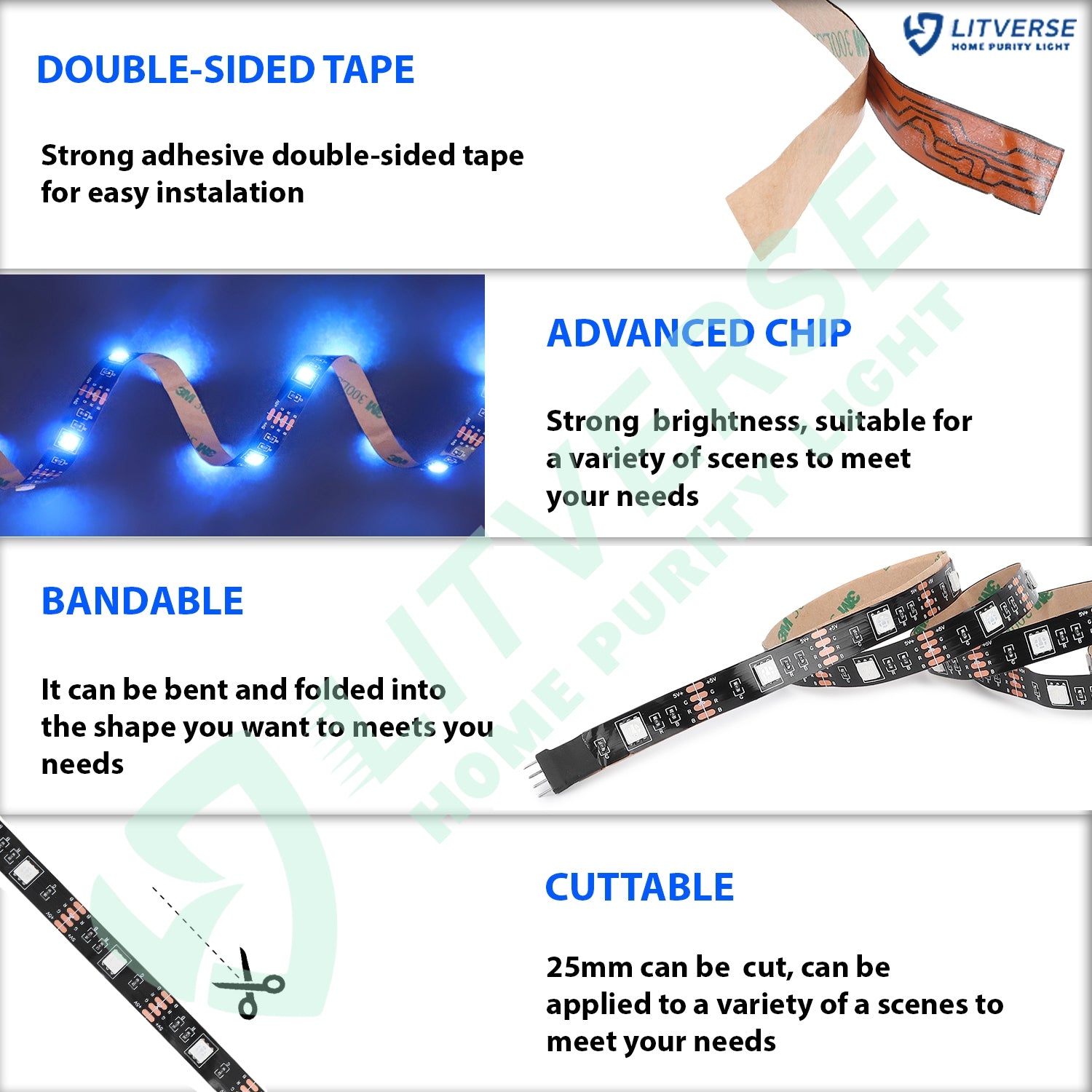 EASY TO USE: Just clean the back of your TV, secure your LED strip light, plug the TV backlight USB plug into the USB port, and you have a great TV light or monitor backlight. Cut the LED strip every 1 inches for the perfect fit. The TV light strip powers on and off with your TV’s USB port.