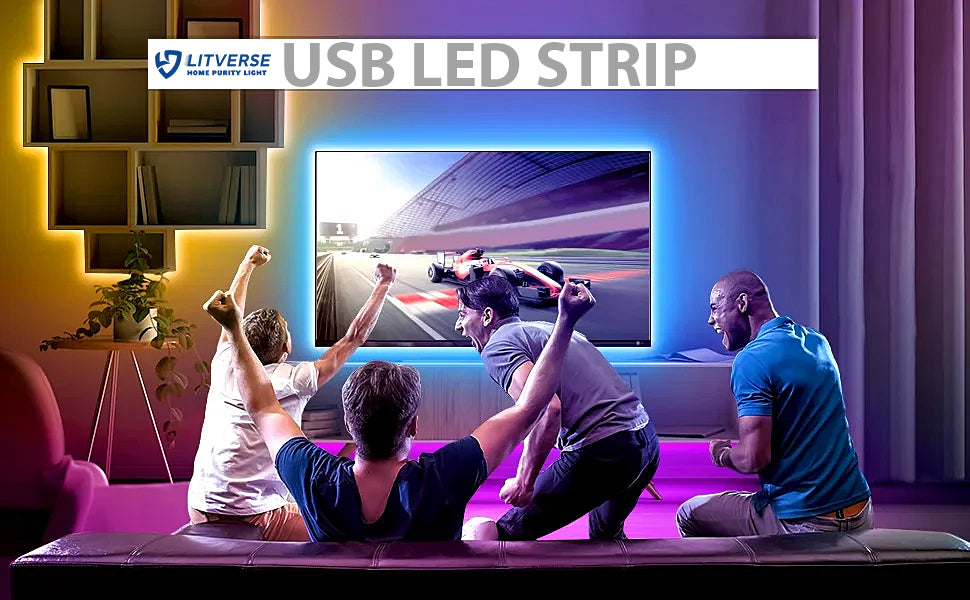 LITVERSE Light Strips 4Meter | RGB 5050 Color Changing LED Strip Light with USB Cable for TV Backlight, Bedroom, Cabinet Shelf Display (4Meter-Upto 50" to Above - Multi)