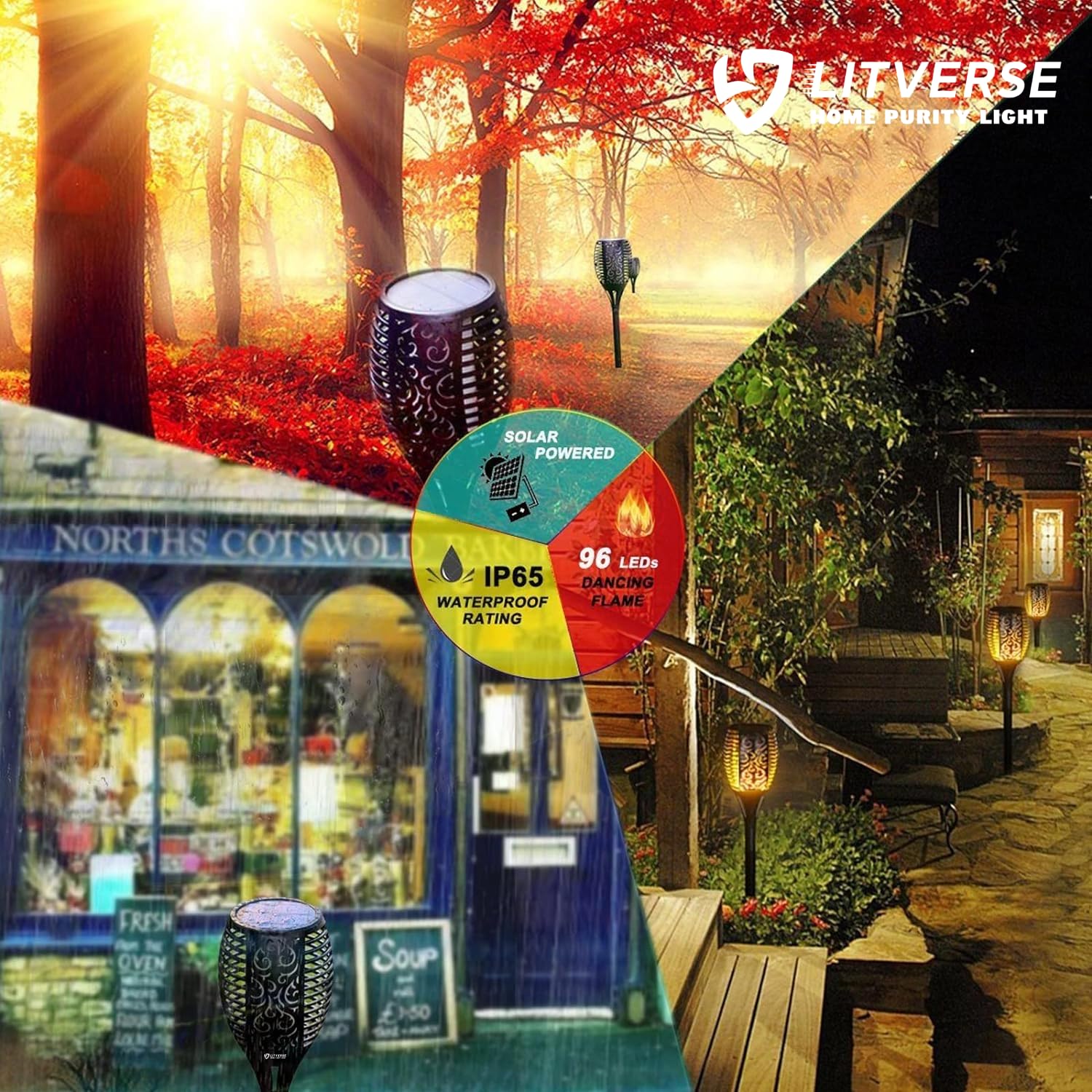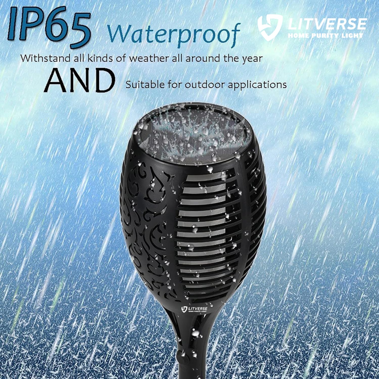 - π₯ Realistic Flickering Flame Effect β Each torch features 96 LEDs that create a stunning, warm flame-like glow, enhancing the beauty of your outdoor space.