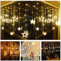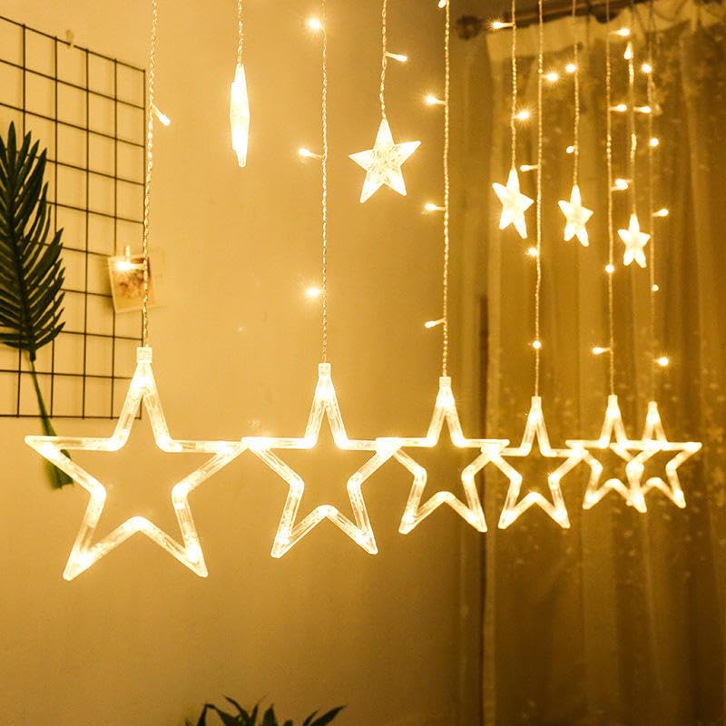 - 130 LED Star Curtain Lights – Features 6 big stars and 6 small stars with warm white glow; ideal for festive and cozy ambiance.