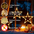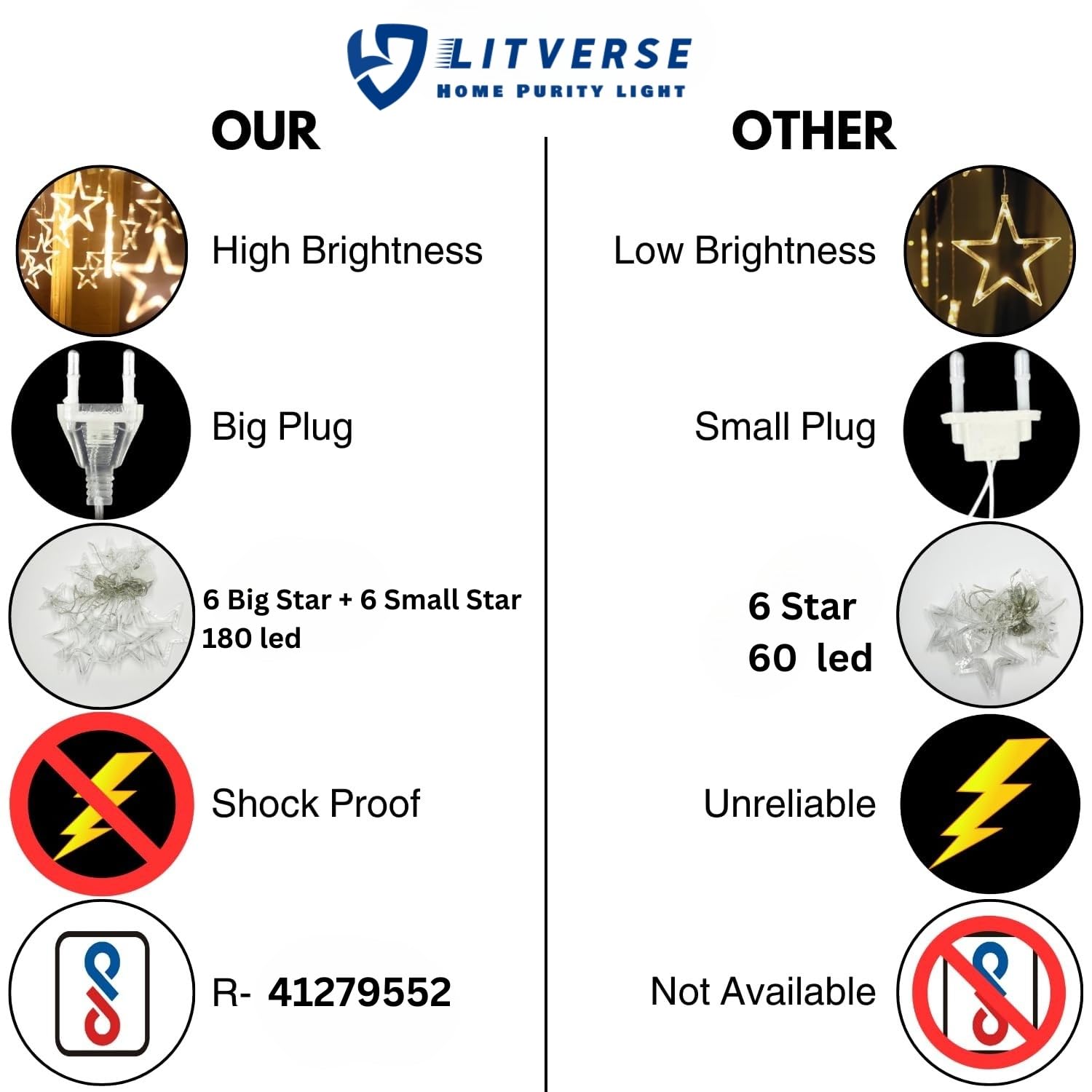 Star Curtain LED Lights | 130 LEDs, 6 Large + 6 Small Stars | 8 Flashing Modes | White Fairy String Lights for Diwali, Christmas, Wedding, Party, Home, Window & Wall Decor